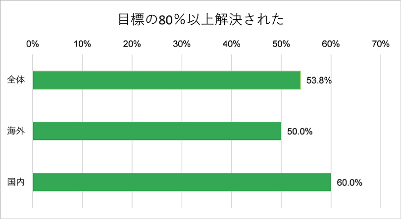他の2団体は「あまり解決されなかった(60%)」と回答しているが、当初想定したスピードで目標に到達しなかったためであり、組織の土台はつくることができたとしている。