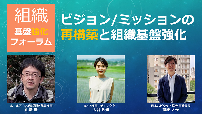 山崎さん ビジョン/ミッションの再構築と、その向こうにある組織基盤強化をやってみると、自分たちだけではできない道筋も見えてきます。だけど、その部分を隣にいる団体がやってくれたらうれしい。共通言語を掲げる団体を増やし、どんどん化学反応を起こしていかないと社会課題の多様さや変化の激しさには追いつけません。組織基盤強化のプロセスの成果を隣の団体との連携にもつなげていくことが大事なのだと思います。とはいえ、ステップを一つ踏んだら、また新しい課題が出てきて、改めて組織基盤強化のプロセスを回さないといけなくなる。組織がある限り、組織基盤強化は続きます。