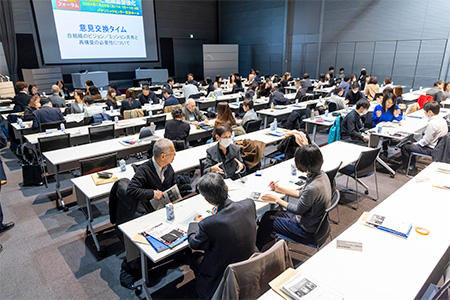 パネルディスカッションのあと、会場の参加者は4人で一つのグループになって、この日学んだことを分かち合い、それぞれの組織のビジョン/ミッションを紹介し、意見を交換しました。25分間のディスカッションを経て、最後に全体で質疑応答の時間を設けました。
