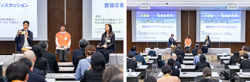2025年1月24日、「Panasonic NPO/NGOサポートファンド for SDGs」の贈呈式に続きまして、日本NPOセンターとの共催で、組織基盤強化フォーラムを開催しました。会場には、贈呈式にご参加くださった助成団体の皆様とフォーラムにご応募くださった皆様、合わせて99名にご参加いただきました。キーノートスピーチや組織基盤強化の事例発表、皆さんとの質疑応答やパネルディスカッションを通して、人という観点から組織基盤をどのようにつくっていくのかを考えました。