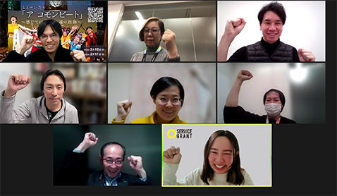 成果報告会には、2023年度プロジェクトのプロボノメンバーに加え、プロボノ参加を検討している従業員、プログラムの当初から運営を共にしている認定NPO法人サービスグラントの皆さんが参加しました。プロボノチームからの発表に続いて、他のチームメンバーとサービスグラントの担当から感想をいただきました。