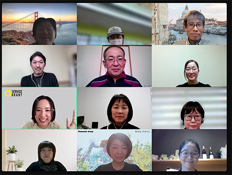 報告会では、長期プロジェクトに取り組んだ4団体のプロボノメンバーが活動の成果を発表しました。プロボノメンバーに加え、視聴を希望したパナソニックの従業員、運営を共にした認定NPO法人サービスグラントの皆さんが参加しました。各チームからの発表に対し、他チームのメンバーや伴走したサービスグラントの担当者から意見や感想を伝え、充実した振り返りの機会となりました。
