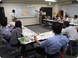 ワークショップは、環境保全や地域づくりの分野で協働コーディネートの実績が豊富な「外部ファシリテーター」を進行役として迎え、4団体から2、3人ずつが参加する形で行われました。