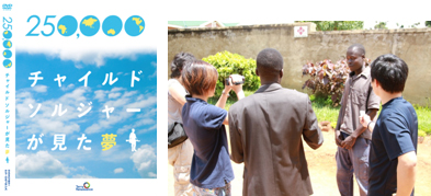 「テラ・ルネッサンス」では、「Panasonic NPO サポートファンド for アフリカ」の助成のもと、広報基盤の強化に向け、2012年、専門家の指導を仰ぎ、子ども兵の現状を描いたDVD1000枚を制作。個人・団体・支援者や学校に送付しました。このDVDは、送付先の学校で講演の資料として活用されるなど、啓発活動への波及効果も見られました。