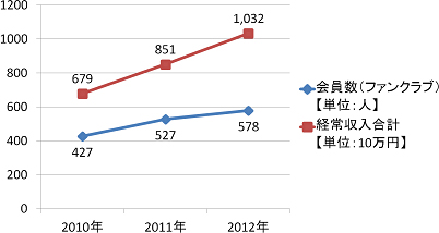 こうした広報基盤強化の取り組みの結果、テラ・ルネッサンスの会員数(ファンクラブ)及び収入は順調に推移し、財政基盤の安定化につながりました。