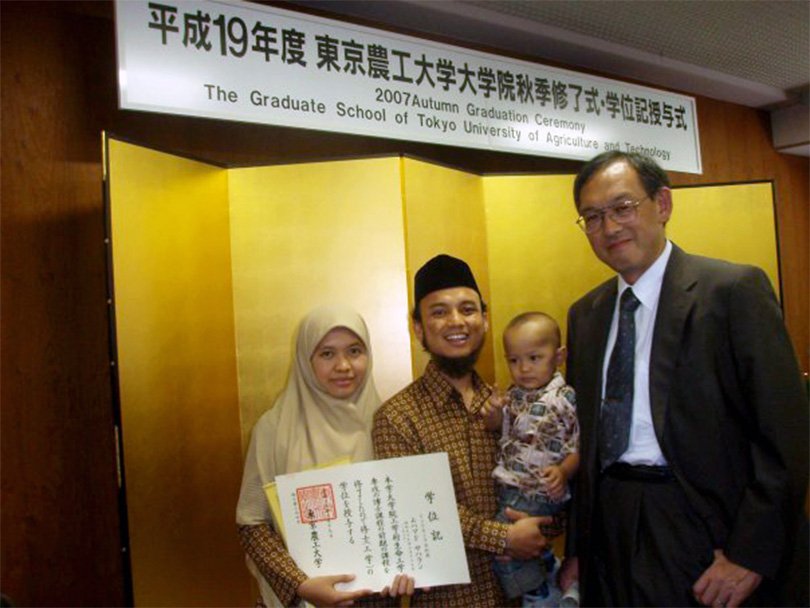 サハランさん:日本国内のいろいろな企業のスカラシップや政府の制度も調べました。他の国のスカラシップも検討しましたが、私は、それまでの経験から、日本での生活の中で博士課程も学べたらいいなと思うようになっていました。すると、パナソニック スカラシップは、初めての例として私の博士課程の支援を決めてくれたのです。おかげさまで、東京農工大学で生命工学専攻の博士課程を取得し、2010年に国立インドネシア大学に採用されました。私が大きな一歩を踏み出せる形で日本から送り出してくれたパナソニック スカラシップに、とても感謝しています。