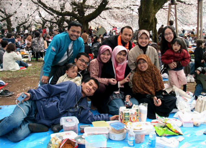母国出身の留学生と積極的に交流を図りました。写真は花見会の模様。写真:サハランさん提供。