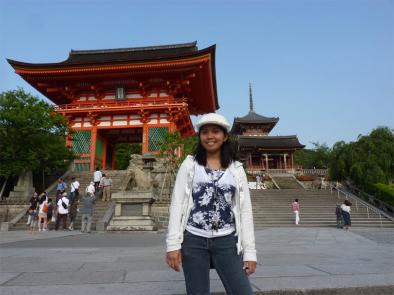 「日本語能力試験に合格して日本留学が確実になったときは、私の人生の中で最高の瞬間。そこからは何もかもが順調でした。私の場合、留学先である日本のパナソニックのスタッフに加え、パナソニック フィリピンの職員もこまめに連絡をくれ、彼らが留学のための飛行機代まで負担してくれました。京都大学での学びはとても有意義で楽しく、これ以上ないくらいに充実していましたね。私が在籍した農学研究所では留学生へのサポートが充実していて助かりましたし、研究室の日本人メンバーも、意欲的に私と英語でコミュニケーションしてくれました。お返しに今度は彼らが私に日本語を教えてくれることもあったんですよ。毎年夏にはゼミ合宿があり、みんなでテニスをしたり一緒に楽しく過ごしたりしました。大学の学生食堂も印象深いです。お箸をうまく使えないことを除けば、自分も日本人の学生になったかのような気持ちになってうれしかった。夏は祇園祭を見物に行き、秋には嵐山へ。桜のシーズンには鴨川のほとりで食事をするのが何より楽しみでしたね。京都での日々は、本当に幸せなものでした」