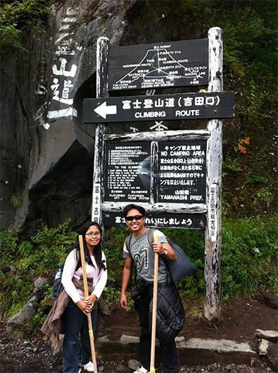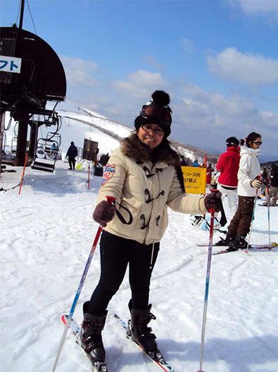 スキー場にて(写真左)。富士登山など、日本では非常に多くのことを体験しました。
