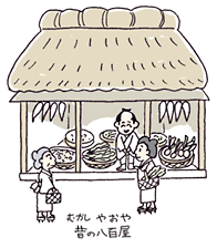 今と比(くら)べるといろいろな物がなかったから、八百屋(やおや)さんなどの店先や食卓(しょくたく)は随分(ずいぶん)違(ちが)うよ。