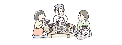 まだ日本では畳(たたみ)の生活が多く、今のようにテーブルにいすでご飯を食べるのではなく、ちゃぶ台を囲んで食事する家が多かった。どんな物を食べていたかというと、今みんなが大好きな物がどんどん食卓に登場するようになっていたんだ。ハンバーグ、オムレツなどが食卓をにぎわしていた。