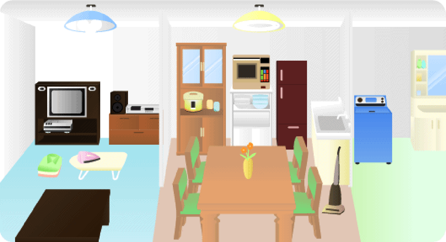 台所には、ピカピカのステンレスの流し台が置かれ、大型の冷蔵庫(れいぞうこ)や家電製品(かでんせいひん)が並(なら)ぶようになった。電子レンジがある家も増(ふ)えてきた。お父さんが、夜おそく帰ってきた時におかずをあたため直したり、外で働くお母さんも増えていたから、「これは便利(べんり)」と喜ばれたんだ。