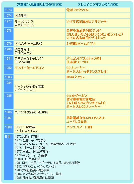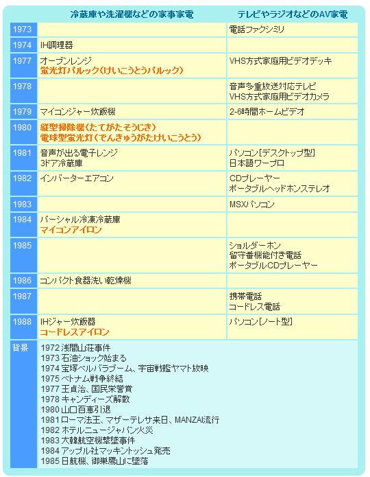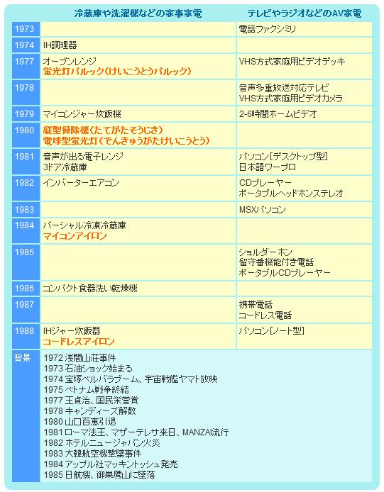 最初の頃は便利なだけでよかった家電製品も、このころになって家の中全体がカラフルになると、それにあわせておしゃれな、ファッションタイプのものが登場してきたんだ。