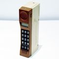 携帯(けいたい)電話ができたのは、1987年のこと。だけど、当時はまだ大きくて重く、肩(かた)からかついでいたんだ。携帯電話を持っている人は、まだまだ少なかった。