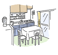 ダイニングキッチンの登場によって、今まで「台所は暗くてせまいところ」と思われていたのが、大きく変わった。台所は、家族が集まる中心の場所になったんだね。