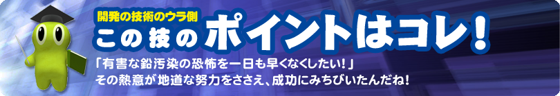 「とにかく早く電気製品(せいひん)の部品に使われるはんだから、人体に有害な鉛をとりのぞかなければ!」