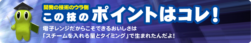 そんな中で、「電子レンジだからこそできるおいしさ」がつくれる電子レンジを開発しようということになったんだ。