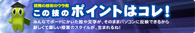 パソコンの画面がそのままボードにうつって、その画面に電子ペンで絵や文字をかきこんだものが、パソコンにそのまま反映(はんえい)されるんだよ。