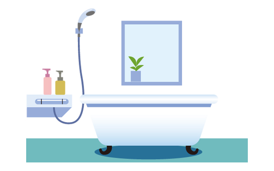 シャンプーボトル横のギザギザ、水栓(すいせん)レバー・・・。