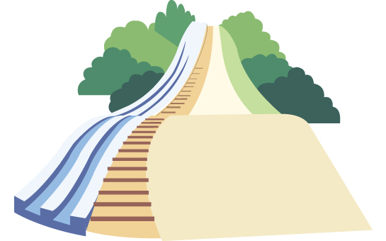 上がっていく構造(こうぞう)になっていたり、砂場や水飲み場は車いすに