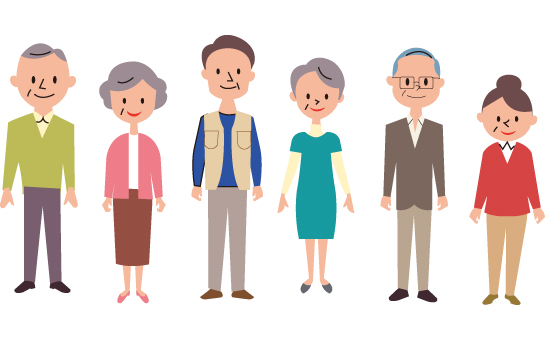 高齢化(こうれいか)社会によりおとしよりがふえていること、