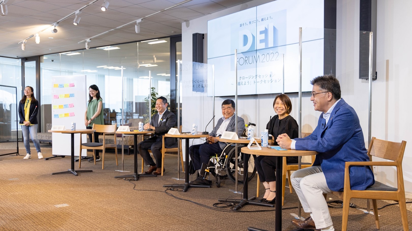 パナソニックグループでは、多様性推進の機会の⼀つとして、「話そう。気づこう。越えよう。」をスローガンとした「グループDEIフォーラム」を毎年継続的に開催しています。2024年度は、「アンコンシャス バイアス(無意識の思い込み)」をテーマとして設定。グループCEOとグループCHROによる「DEIパネルトーク」 や、「アンコンかるた全体大会」 の模様を動画で配信しました。なお、近年はこのグループ全社イベントに加え、事業会社独自の社内イベントも開催され、DEIについて社員全員で学ぶ機会が増えています。