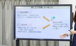 日本地域では、女性社員を対象に、管理職としての活躍を視野に入れた、リーダーシップやマネジメント実践スキルの向上を図る研修を実施しています。社内外講師の価値観や仕事観に触れたり、会社の戦略の方向性を深く知った上で、自身の新たなチャレンジについて検討したり、多くの女性社員が自らのスキル向上を目指して参加しています。