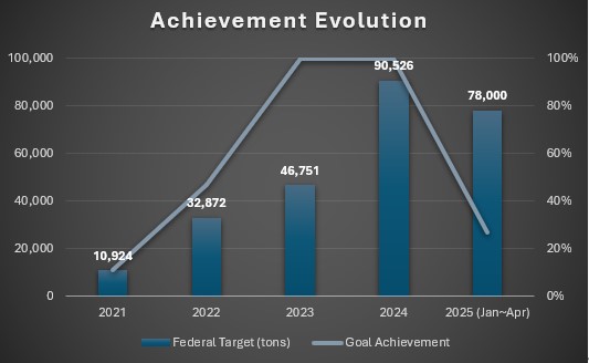 2023年の実績では、回収・処理された総量は46,800トンで、設定された目標を100%達成しました。2024年の目標は90,500トンであり、ABREEはこれを完全に達成しました。2025年の目標は市場に投入された製品の17%に相当する量であり、2025年4月時点で既に20,200トンが回収・処理されており、目標の27%を達成しています。パナソニックは、ABREEのリーダーシップにおいて重要な役割を果たし、この成果に大きく貢献しています。