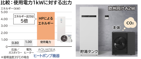 主な販売地域:エコキュートは日本、A2Wは欧州