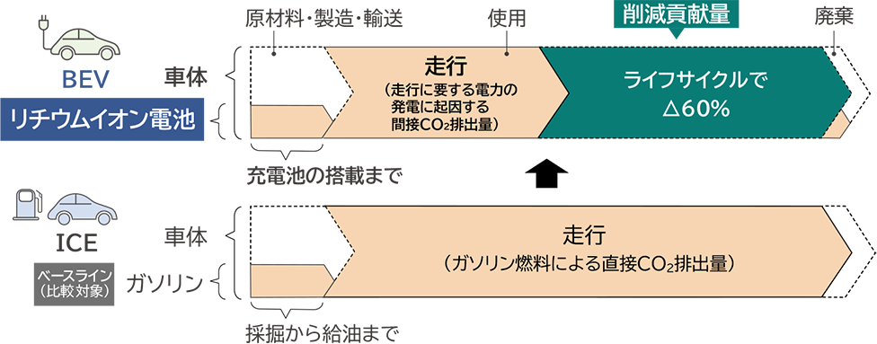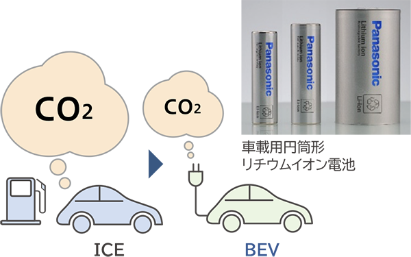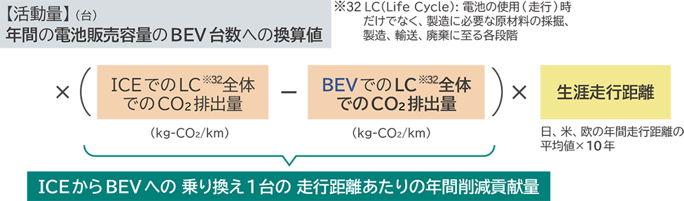 当社で最大の削減貢献量を創出している車載用円筒形リチウムイオン電池については、2023年度から算定方法をライフサイクル視点に精緻化しました(従来は走行時のみを評価)。これにより、電池1単位あたりの削減貢献量は減少しています。