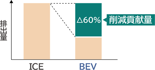 原材料調達、製造、輸送、廃棄の各段階におけるCO2排出量の差分(使用時はゼロ)。