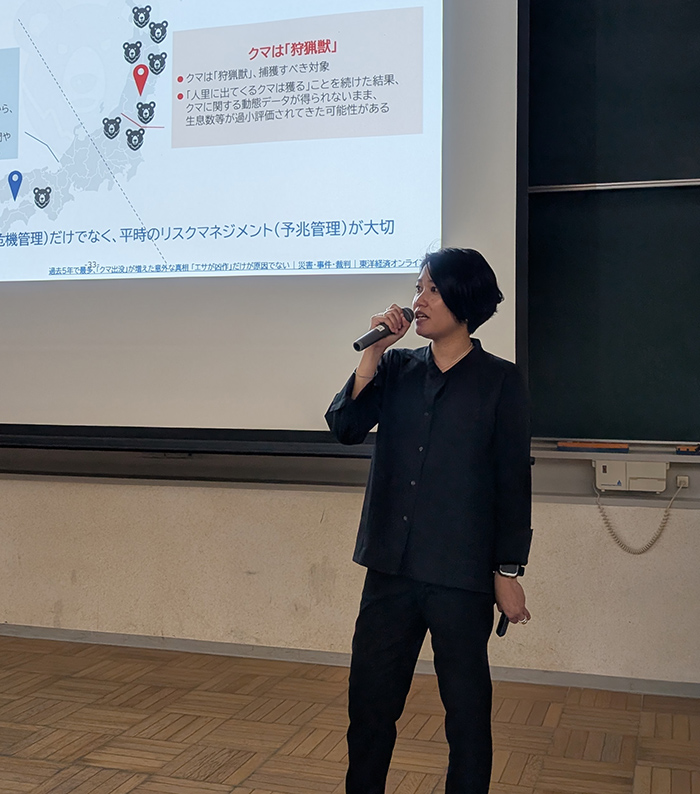 企業の社会的責任の一環として、リスクマネジメントを通じ未来を担う若年層の成長に寄与することを目的として、社外(大学)の講座においても「組織と人の成長を支えるリスクマネジメント」と題した講演を展開しています。