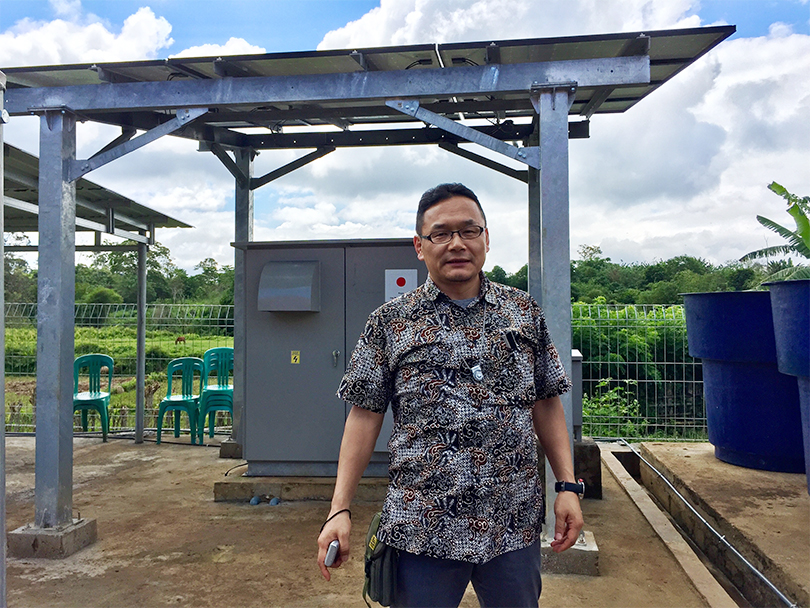 PSS事業を行っているインドネシアは、約13,000島からなる島国です。2016年現在の電力未利用人口は9%ですが、離島や山岳地帯を中心に無電化の課題を抱えています。2014年度より在インドネシア日本国大使館の「草の根・人間の安全保障無償資金協力(ODA)」事業に採択され、以後これまで4地域でPSSを展開しています。