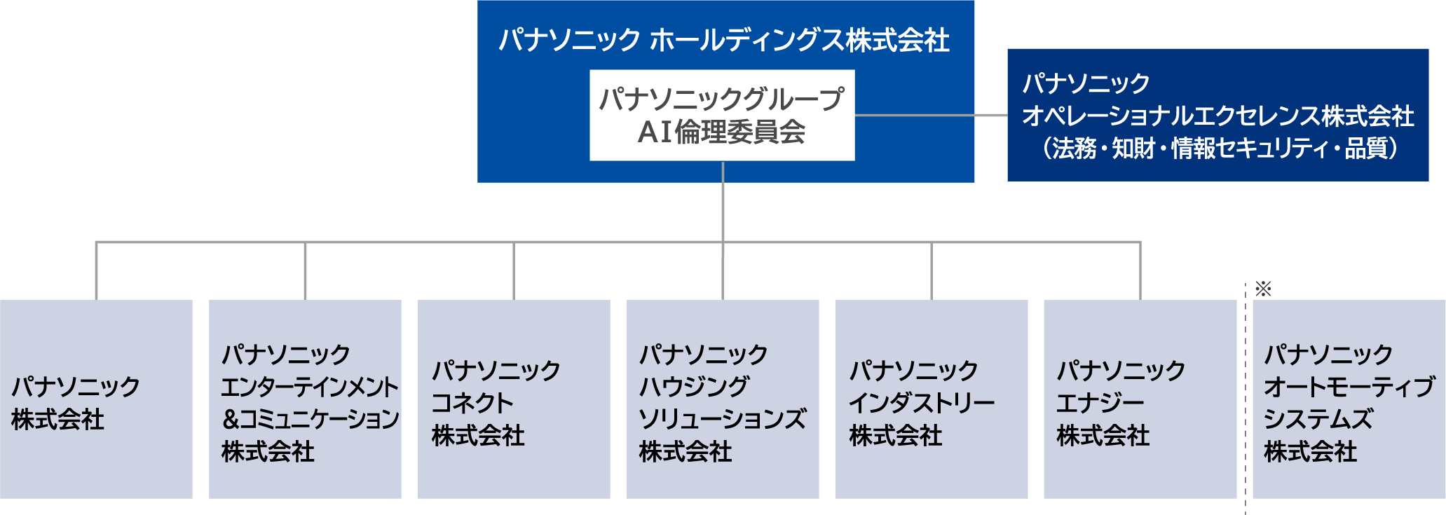 グループCTOがパナソニック ホールディングス内に設置するAI倫理委員会は、AI倫理担当および法務、情報セキュリティ等の関連機能から構成されており、当社グループに対して、AI倫理活動に関する制度や施策の策定、各事業会社のAI倫理活動の支援、リスクの把握・レビュー・対応案の策定等を行います。また、各事業会社にAI倫理担当を置き、AI倫理委員会と連携して各社の事業や技術に応じた活動を推進しています。