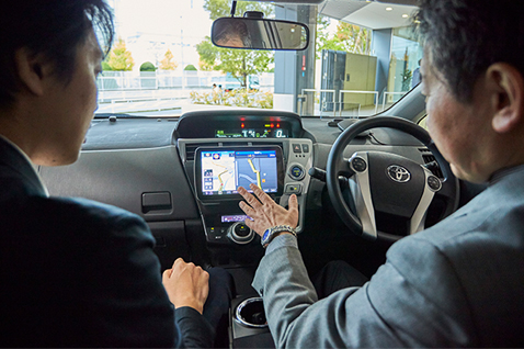 スマートフォンやタブレットを使ったことがない方のために、従来のカーナビと同じ方式でもお使いいただけるようにしています。