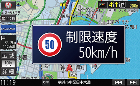 写真5:安心運転サポート機能(左)制限速度などのお知らせ