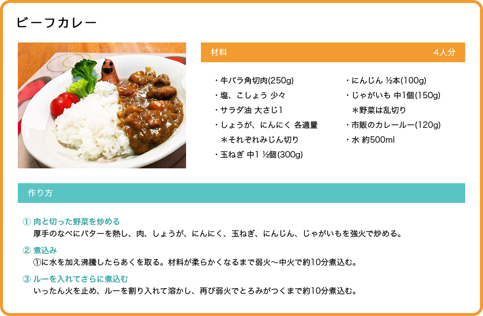 「今日は、IHを使ってビーフカレー、オーブンレンジを使って、簡単に焼き野菜をつくります。オーブンレンジを使うと簡単に、とても美味しく焼き野菜がつくれます。また、ファイバーミキサーを使って、鉄分の多い小松菜で、スムージーをつくっていきます。最後の試食をぜひお楽しみに!」