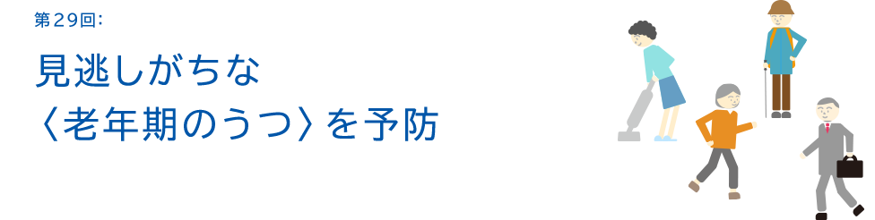 身体の衰え、役割の喪失、親しい人々との別れなど、老年期はうつのリスクが多いにもかかわらず、うつのサインが「加齢のせい」と見過ごされやすく、対応が遅れがちです。