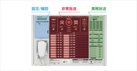火災や地震の時にも、分かりやすい操作で、日英中韓に対応した非常放送ができます。